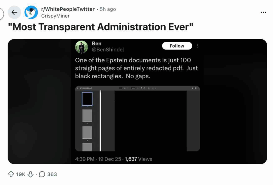 Heard a good joke lately? Try the Justice Department’s Epstein document dump. Thousands of files, “nothing bad about Trump,” and many totally blacked out. My initial search of the DOJ website Epstein files, shortly after they were posted, turned up exactly one hit for “Trump” — a book on Epstein’s shelf — while yielding endless photos of Bill Clinton from trips Epstein happened to join. That takes talent. And intent. And a lot of time — like the year Trump’s DOJ has had custody of the files, and particularly the months gone by since the Massie-Khanna discharge petition first got legs.